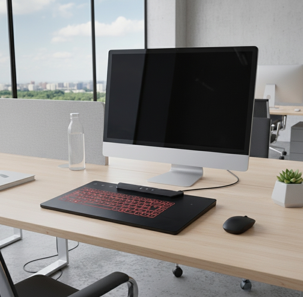 Seit der Erfindung des Computers nutzen Menschen auf ihrem Schreibtisch stets Tastatur und Maus. Mit der Weiterentwicklung der Technologie verwenden die Menschen jedoch immer mehr Geräte zusammen mit ihren Computern, wie z.B. USB-Hubs, Kartenleser und so weiter. Heutzutage wird der Schreibtisch dadurch immer überfüllter, und es wird sogar schwierig, einfache Arbeitsdokumente darauf abzulegen.
